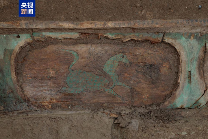 新疆吐鲁番巴达木东墓群,年代属于晋唐时期。2025年考古发掘的一座唐代墓葬,内部陈设彩绘木榻、木棺与木骨屏风,这一组合为唐墓中罕见的实物原型。木榻与《北齐校书图》中所绘木榻极为相似,考古成果让古画场景照进现实。塔式结构的棺座,自下而上由弧形壸门、叠涩、方形壸门组成,彩绘12只带翼瑞兽,依据其外形,大致区分为翼马、翼狮、翼虎等,线条流畅、画工精湛、色彩艳丽,多件器物尚属首次发现,再现唐代各民族交融共生的历史。